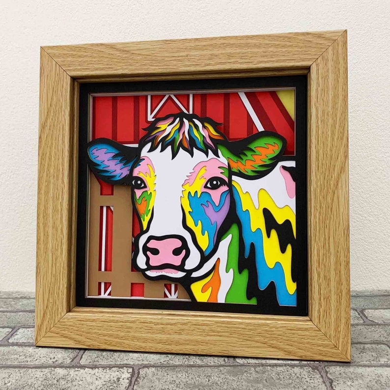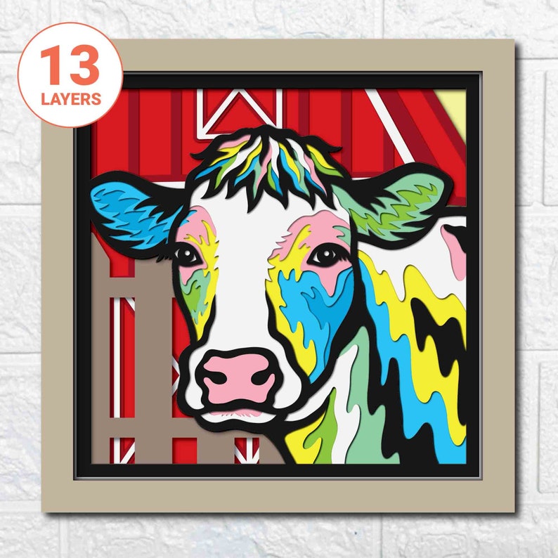 3D Cow Layered SVG For Cardstock - Cow Gift For Farmer - Colorful Cow 3D Papercraft SVG