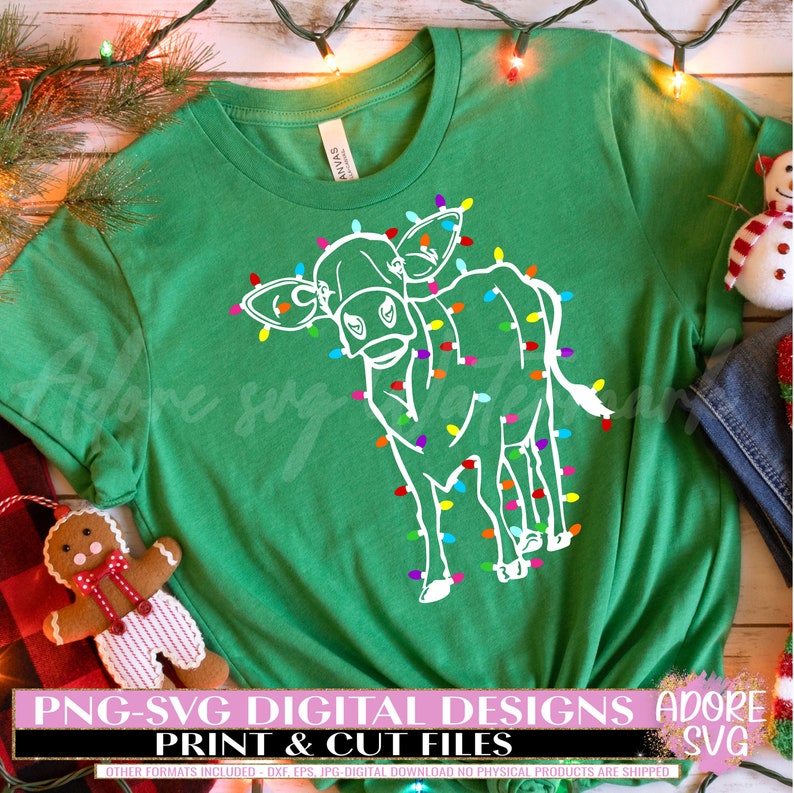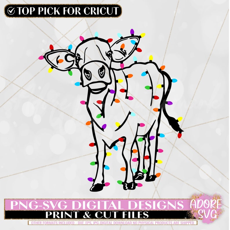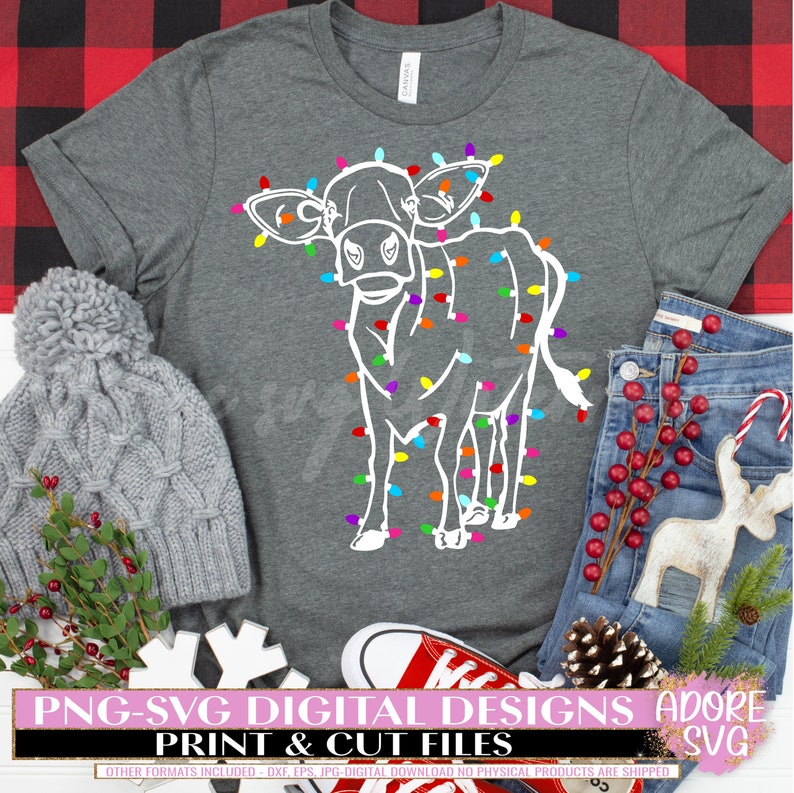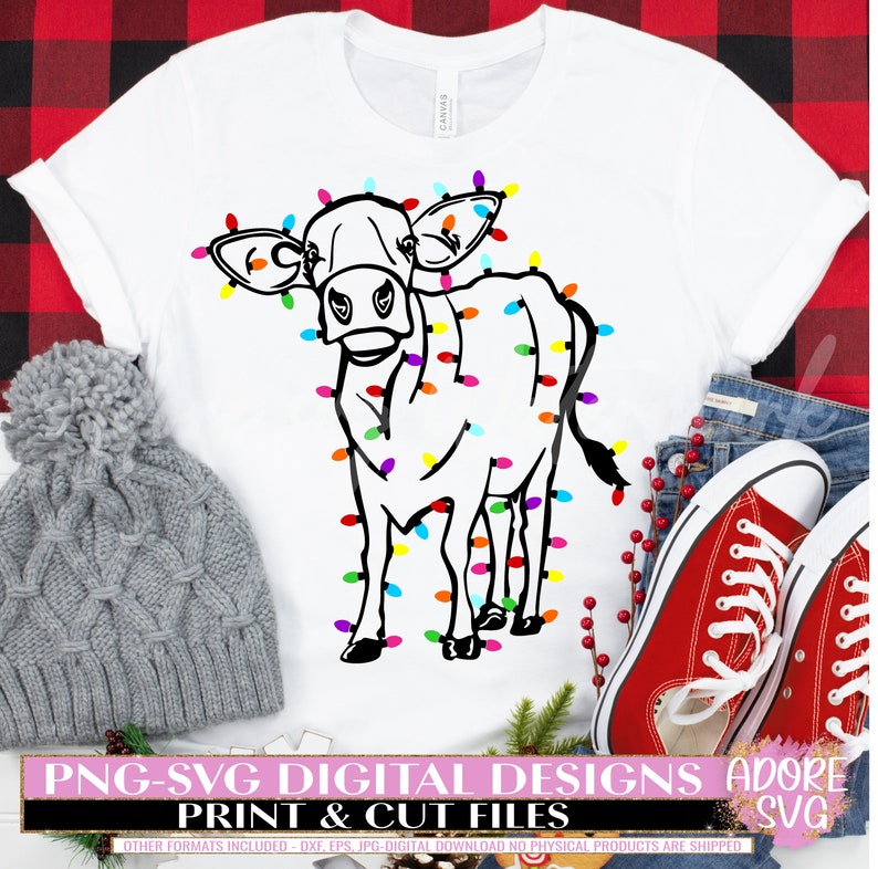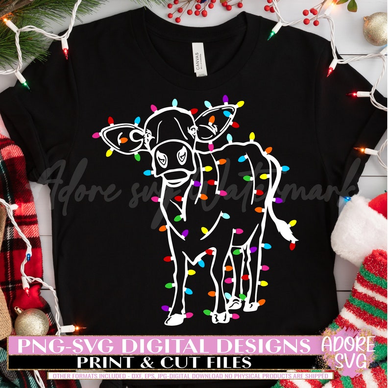 Christmas Highland Cow Svg, Christmas Highland Cow svg Sublimation Png - Christmas svg - Christmas Lights svg