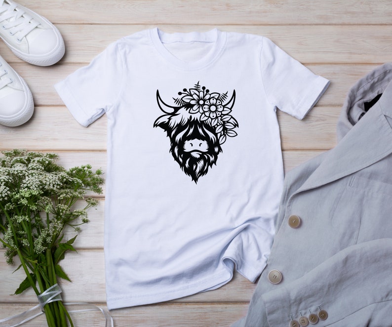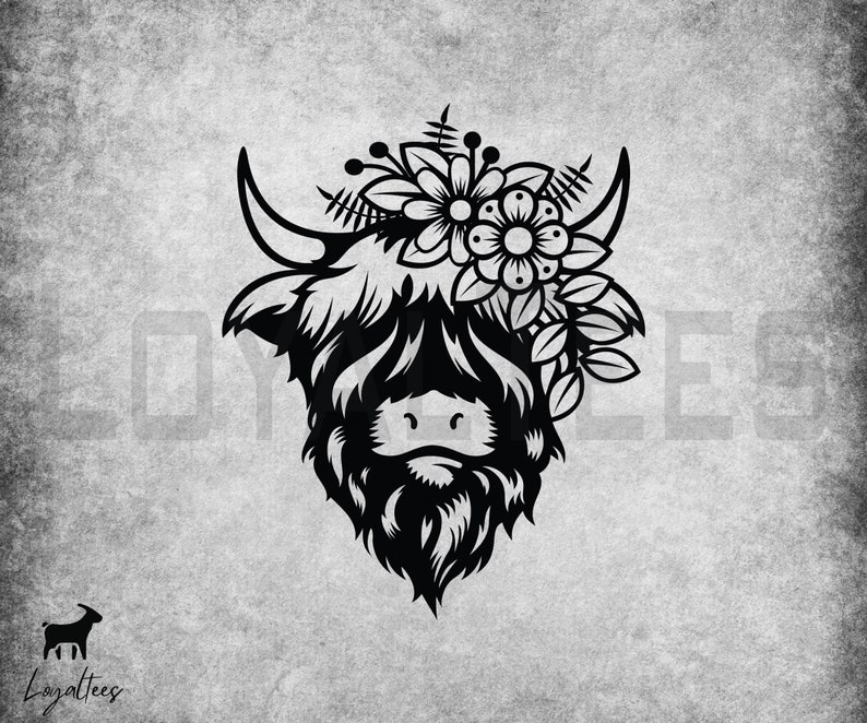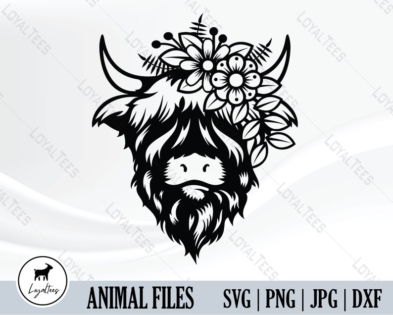 Highland Cow Head Svg, Highland Floral Cow SVG Flower Cow Head Farm Animal Cute Cow PNG Silhouette SVG